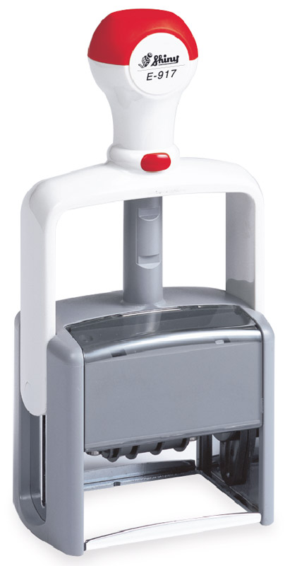 Stabilní kovové datumové razítko s textovou plochou pro každodenní použití. Formát datumového otisku je DD.MM.HH MM. Speciální rukojeť společně s kovovým jádrem jsou zárukou perfektní stability a precizních otisků. K razítku je možné si vybrat z pěti barevných polštářků (černý, červený, modrý, fialový, zelený) nebo polštářek suchý.