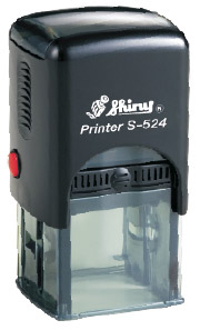 Textové samonamáčecí razítko s klasickým designem v černé barvě s transparentním spodním dílem. K razítku je možné si vybrat z pěti barevných polštářků (černý, červený, modrý, fialový, zelený) nebo polštářek suchý.